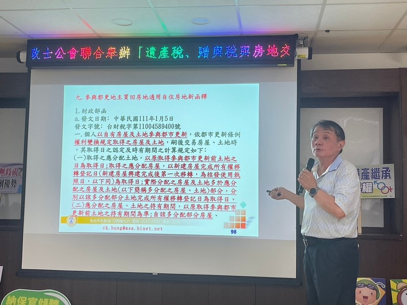 112年度教育訓練「遺產稅、贈與稅與房地交易所得規劃實例解析」。